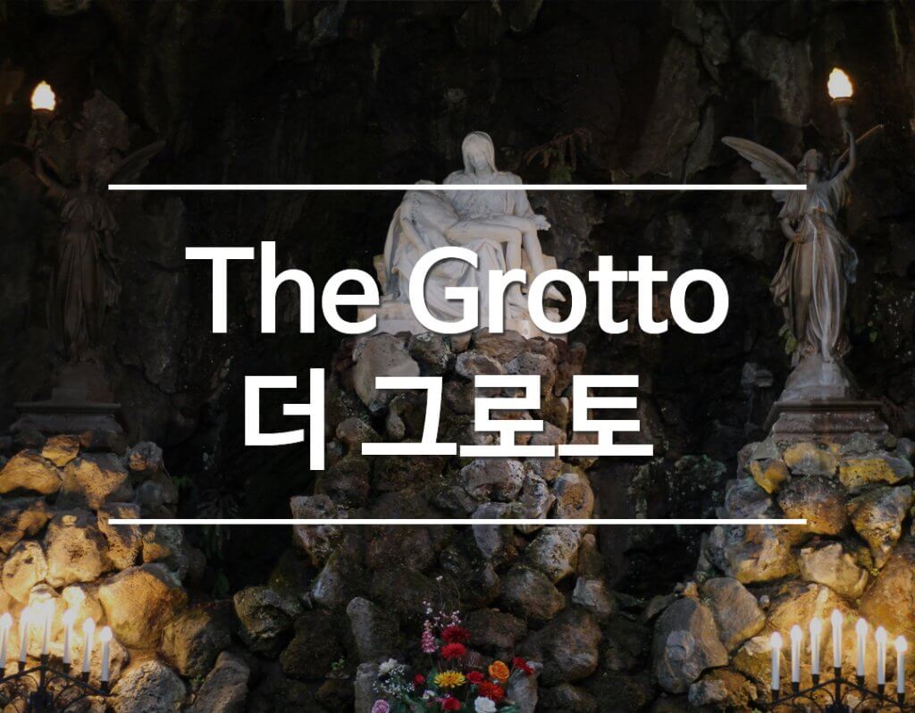 The National Sanctuaryof Our Sorrowful Mother 슬픔에 찬 어머니의 성소The Grotto (더 그로토) The Grotto는 절벽에 있는 가톨릭 성소이자평화로운 보태니컬 가든으로 유명한 곳입니다. 1924년에 지어진 이 가톨릭 성역은크기가 7만 6천 평에 달하며 33미터 절벽의 기슭과 꼭대기에 지어져 있답니다. St. Philip Benizi십자가 앞에 무릎을 꿇고 기도를 하고 있는 조각상 개신교와 달리 가톨릭에서는 종종 ‘사람’이 ‘성자’로 칭송받는데이