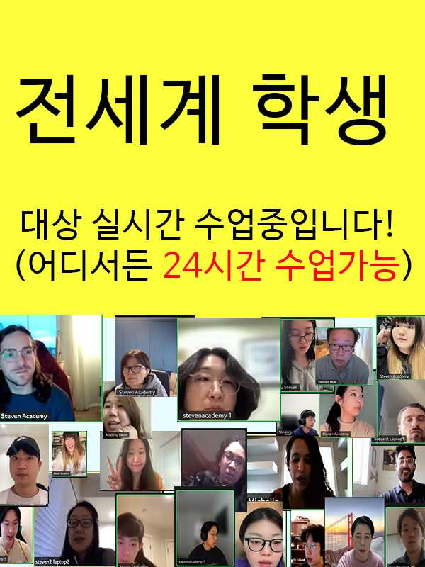 스티븐아카데미는 전세계 학생 대상으로 실시간 온라인수업을 진행중입니다.