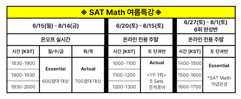 2026 여름 SAT 특강 개강을 알립니다.