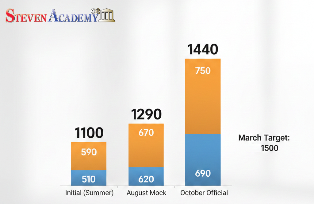 저희 아들이 작년 여름방학부터 스티븐아카데미 1:1 개인수업을 시작하면서 SAT 점수가 눈에 띄게 올랐습니다.