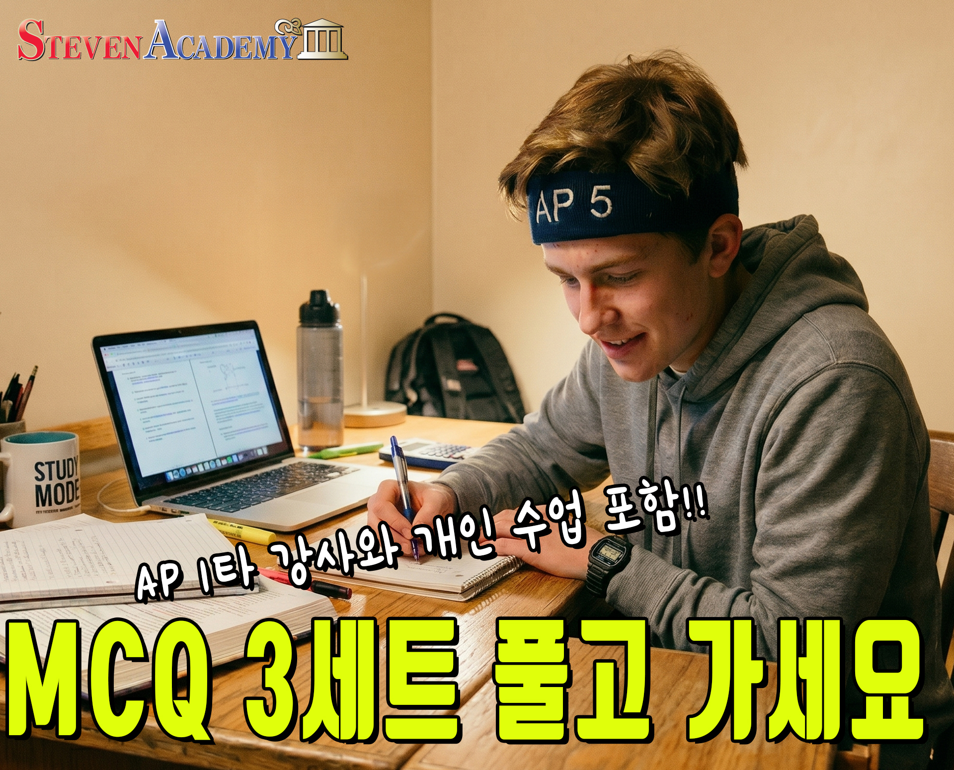AP 시험 MCQ(기출 객관식) 3세트 + 개인 수업 1회로 마무리하고 5점 받아가세요!