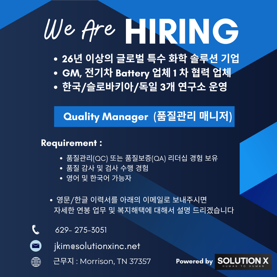 글로벌 특수 화학 솔루션 기업 (품질 관리 매니져) 구인